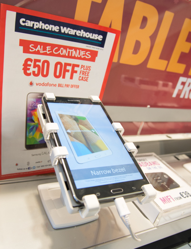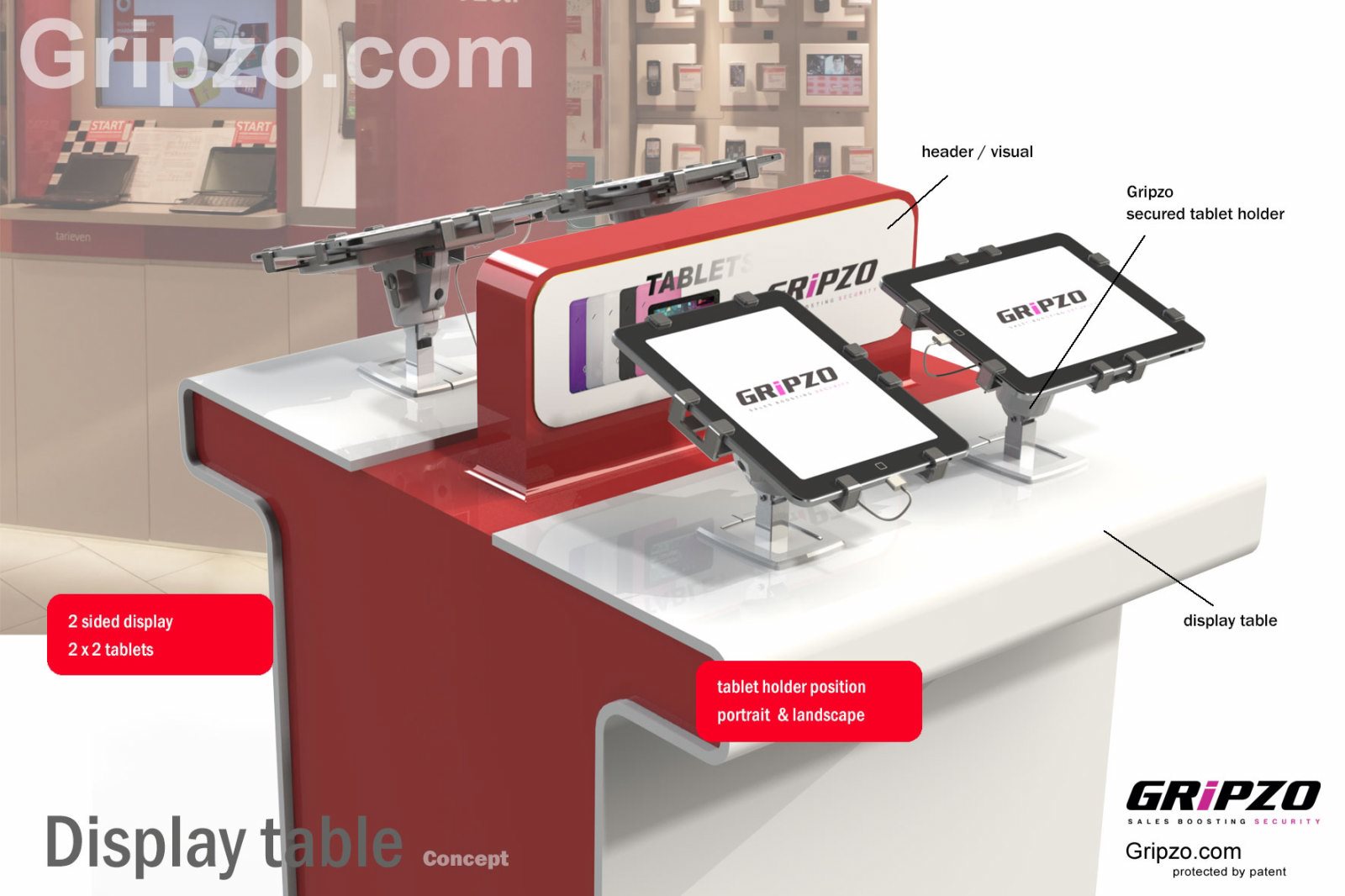 The tablet is locked within durable steel grips providing robust theft protection. Release of a device is done with a security key, no electronics, sensors or cables needed!